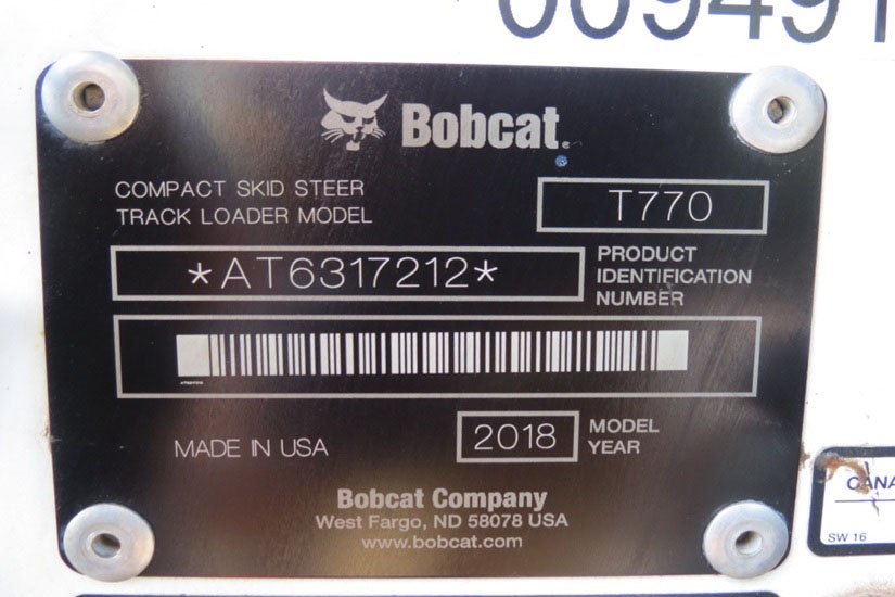 2018 Bobcat T770 Skid Steer Track Loader